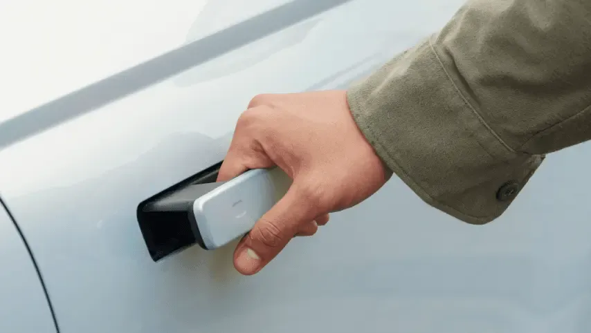 The designers used a spectacular solution - door handles that automatically extend using an electric drive. Minimal force is required to open the door.