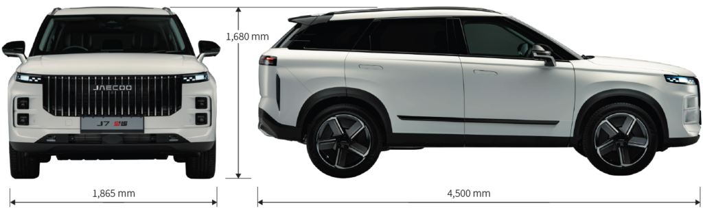 The Jaecoo J7 Super Hybrid features an 18.3 kWh lithium-ion battery positioned beneath the vehicle's floor, enabling a pure electric driving range of up to 100 km